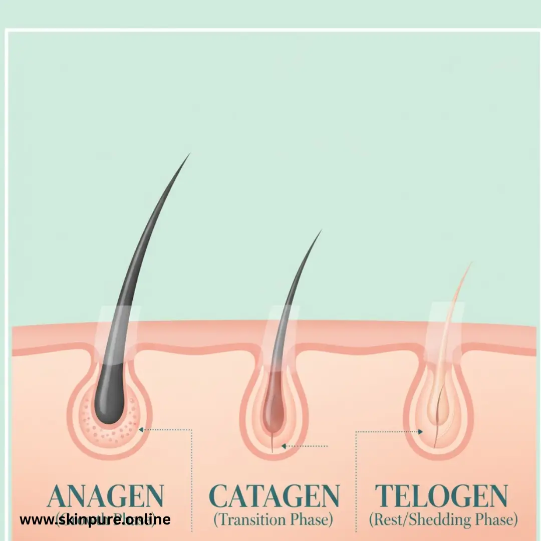 The hair growth begins in tiny structures beneath your skin referred to as hair follicles. They all have their specific rhythm which is the hair growth cycle comprising three phases.