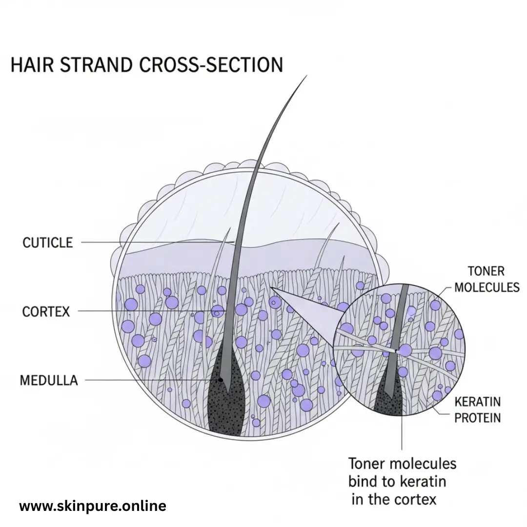 Toners typically have color dyes that complement those of the tones to be avoided in the color wheel.